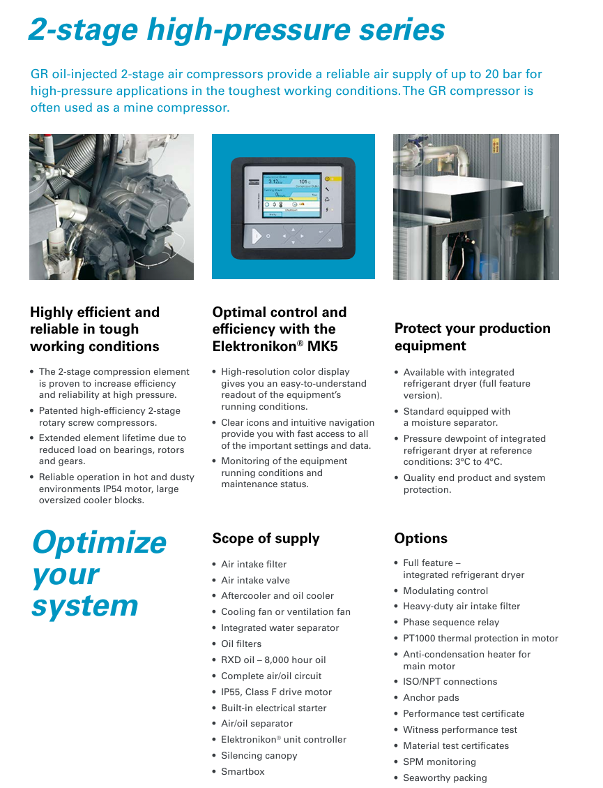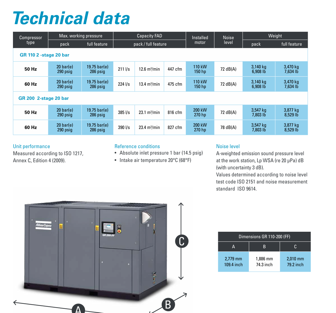 High-pressure oil-injected rotary screw compressors GR 110-200 (FF) up to 20 bar(e) / 290 psig