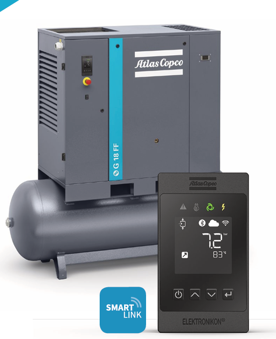 The robust, economical compressor with premium connectivity Meet the belt-driven compressor that gets better over time. Atlas Copco’s G 15L-22 is quiet, efficient, powerful, reliable and economical. And thanks to its advanced Elektronikon® Nano™ controller, you don’t miss out on any feature updates and improvements. It’s easy to use too: you can control and monitor your G 15L-22 with the SMARTLINK app on your mobile device.