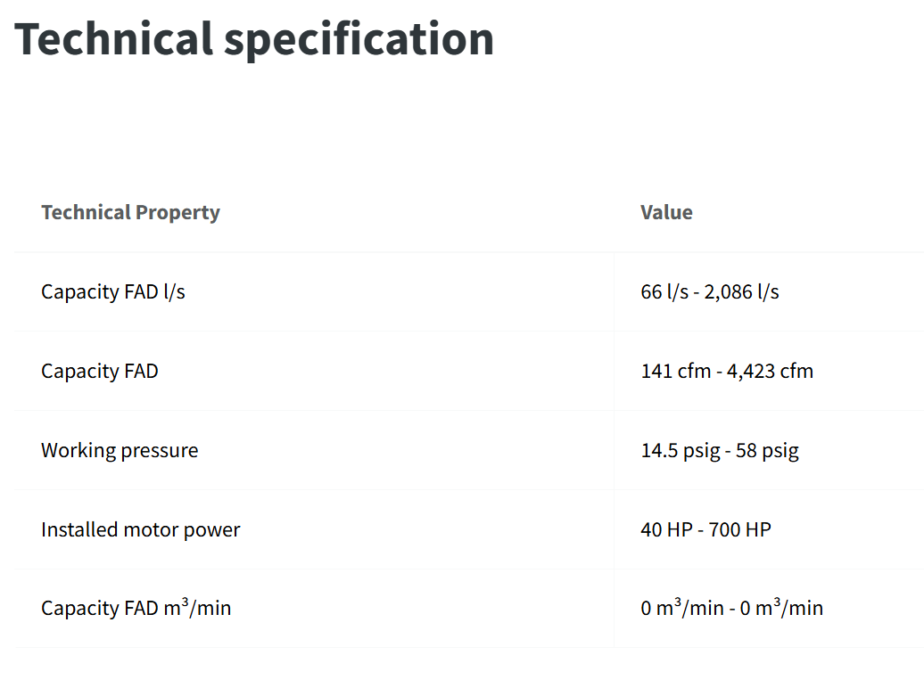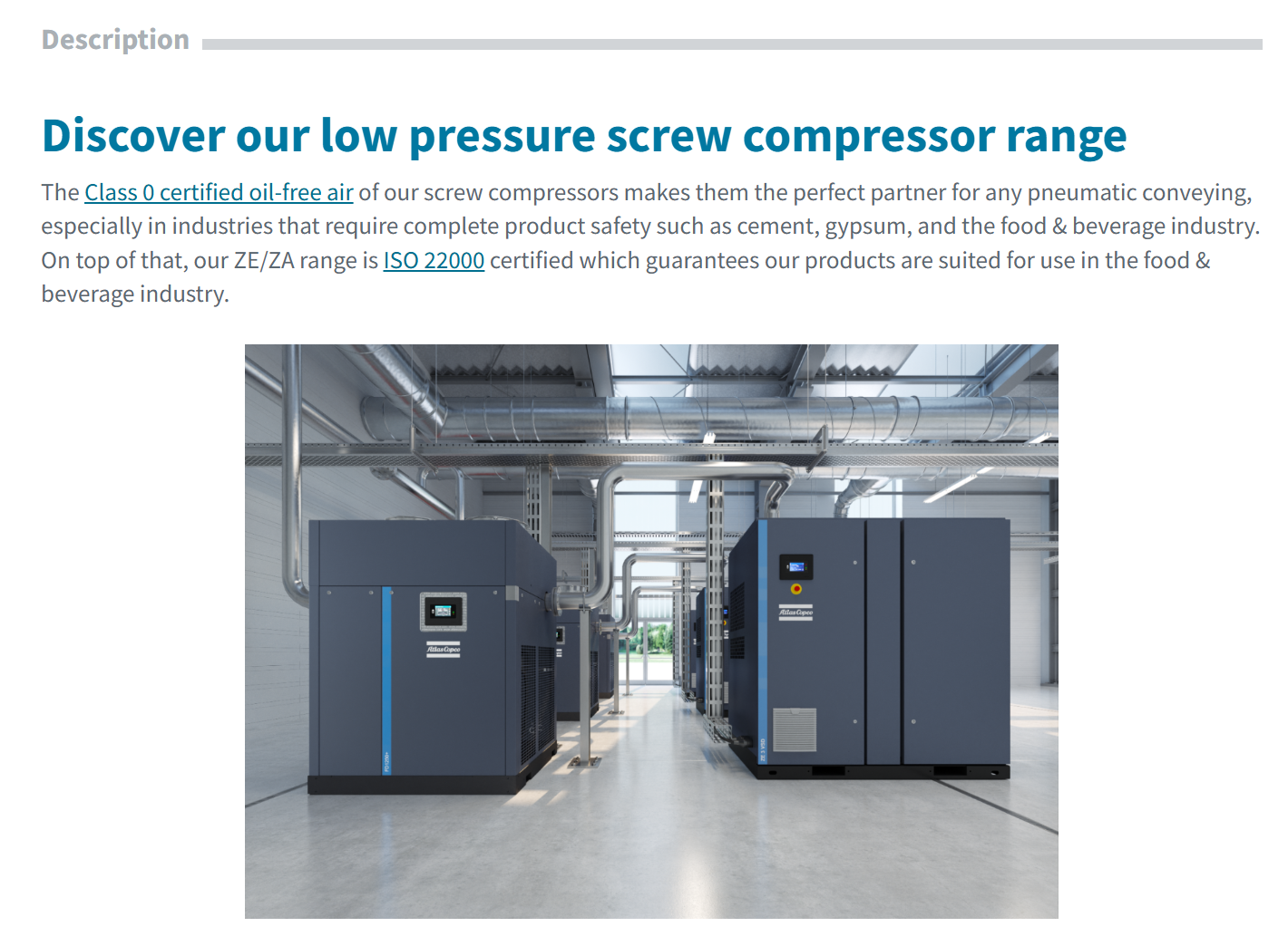 Energy-efficient low pressure screw compressor solutions up to 4 bar(g) / 58 psig