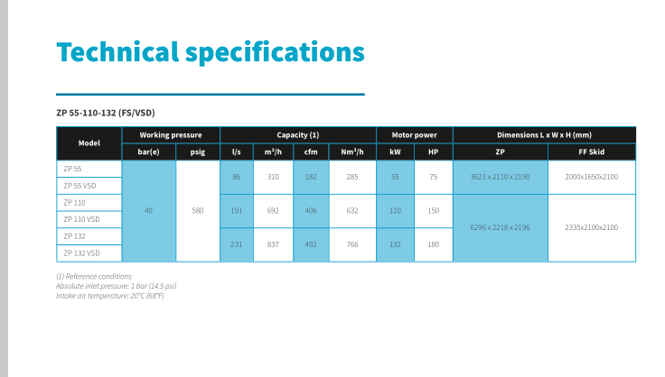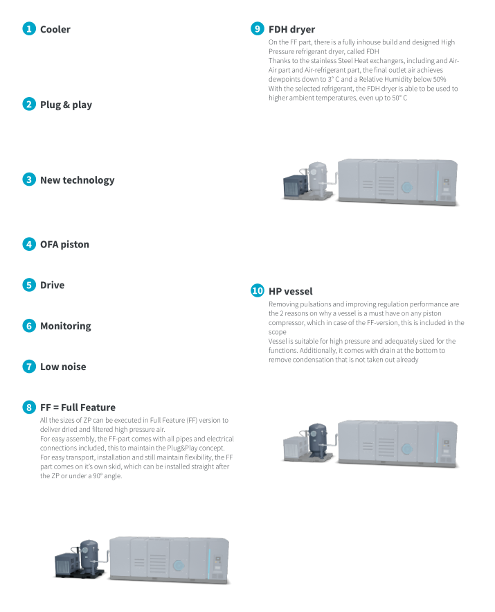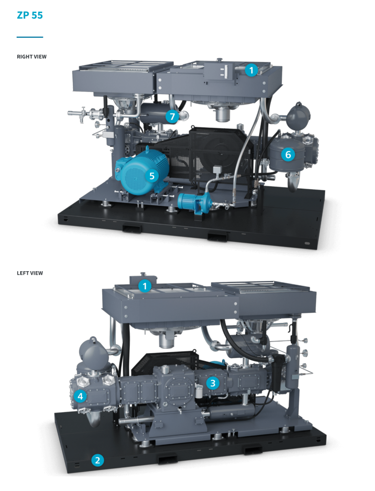 High Pressure air- cooled compressors ZP Series (170-835 m³/h, 110-490 cfm)