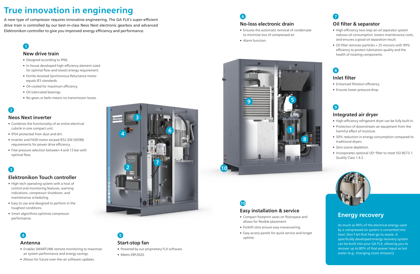 Dual-speed oil-injected rotary screw compressors GA 11-30 FLX (11-30 kW/15-40 hp)