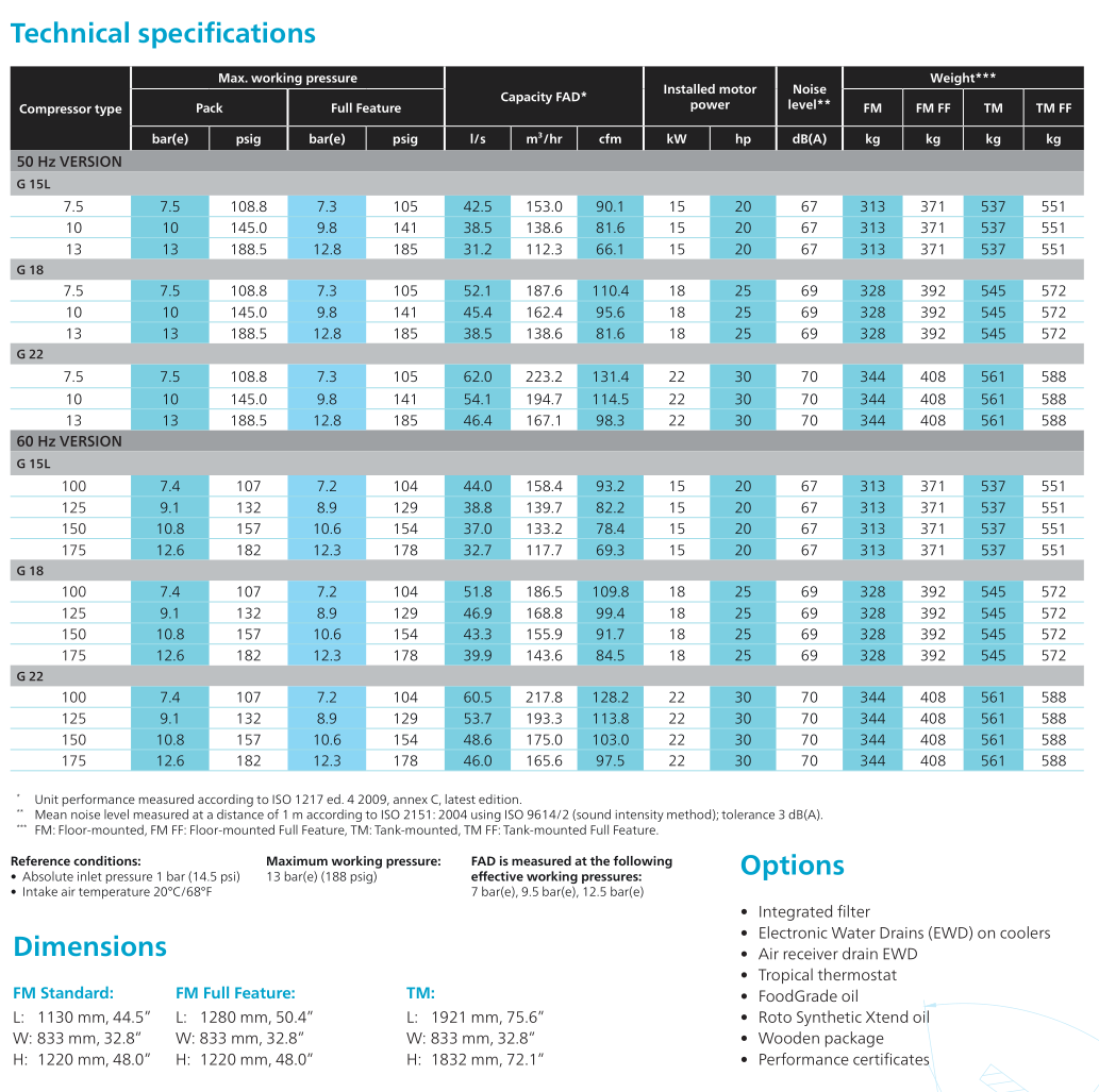 Oil-injected rotary screw compressors G 15L-22 (15-22 kW/20-30 hp)