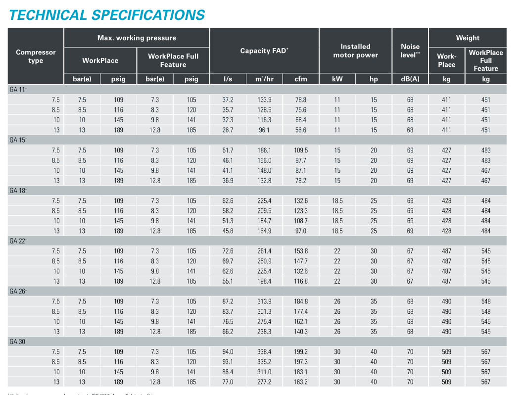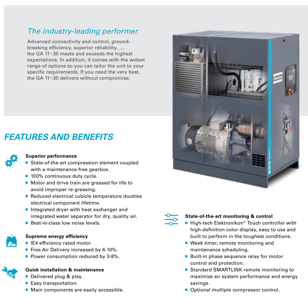 Oil-injected rotary screw compressors GA 11+-30 (50 Hz) (11-30 kW / 15-40 hp)