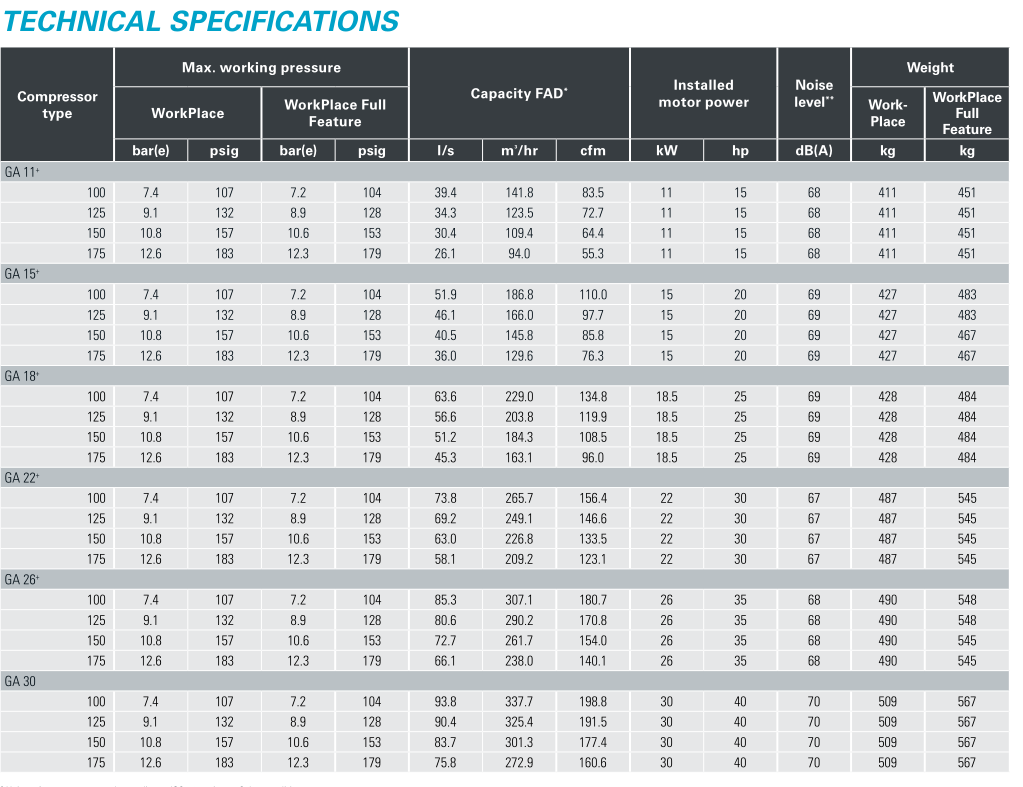 Oil-injectedrotary screw compressorsGA 11+-30 (60 Hz)(11-30 kW / 15-40 hp)