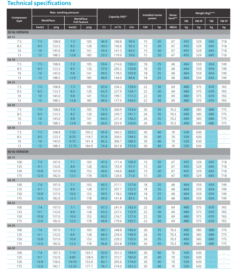 Oil-injected rotary screw compressors GA 15-30 (15-30 kW / 20-40 hp)