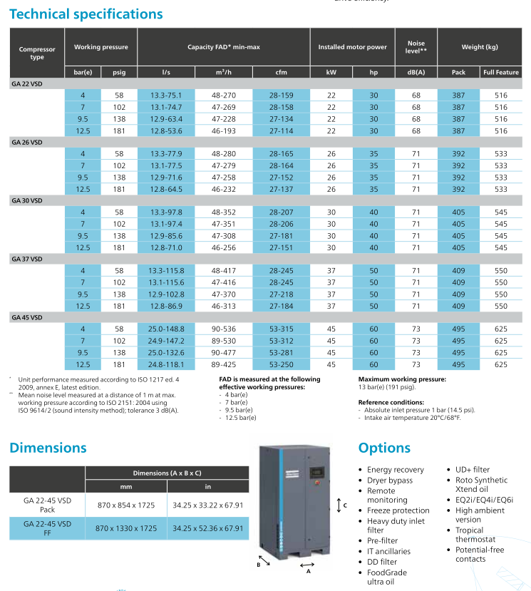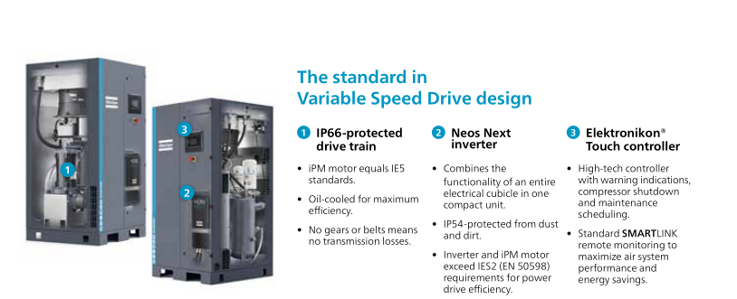 Oil-injected rotary screw compressors Variable Speed Drive technology GA 22-45 VSD